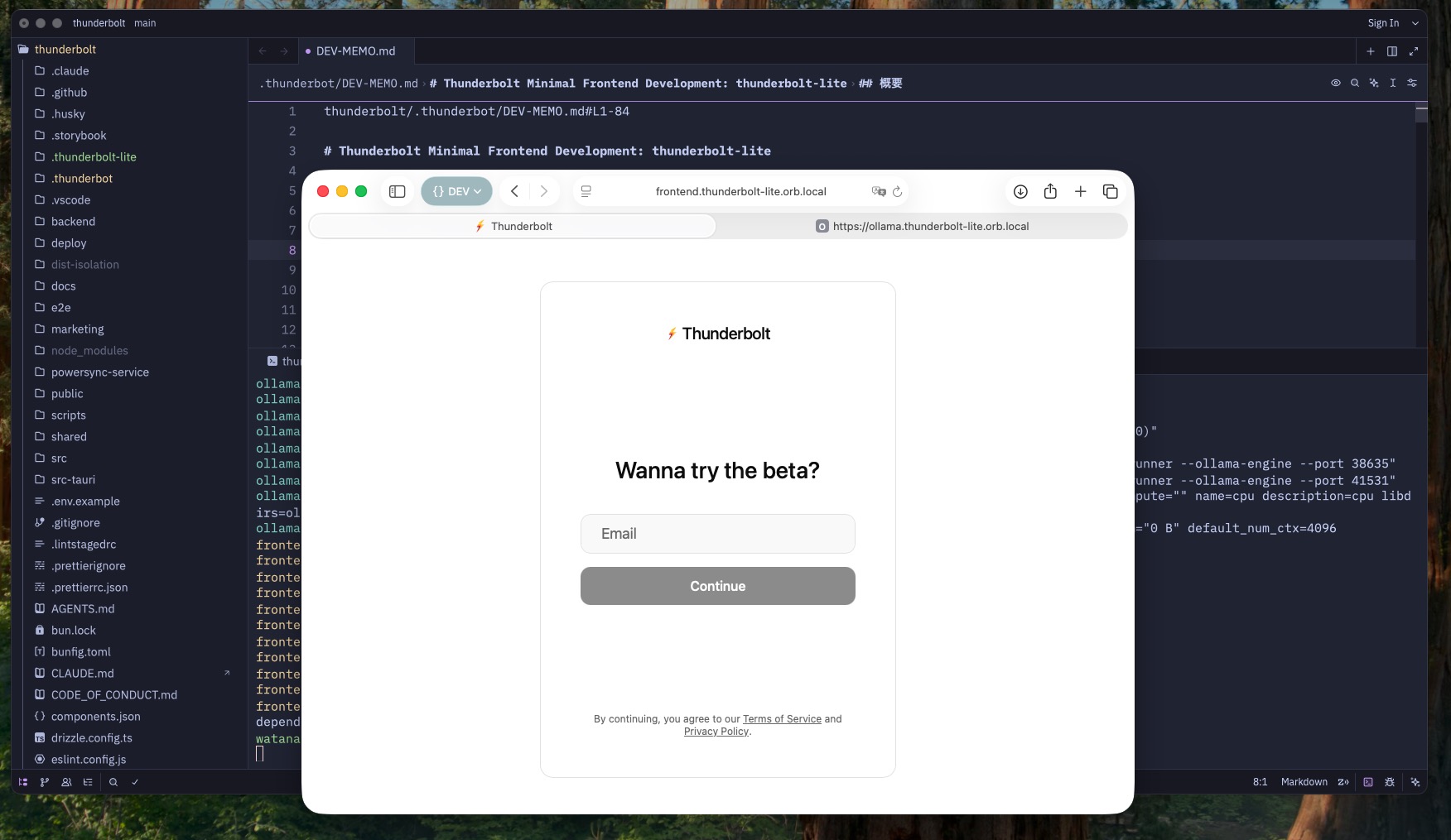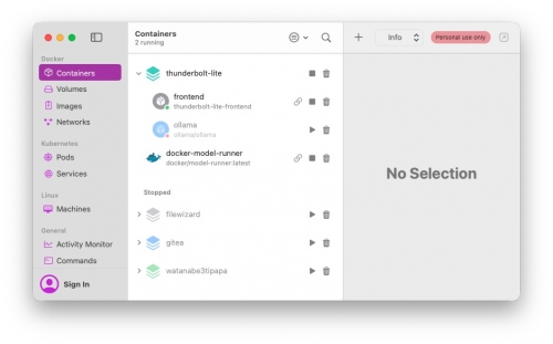 バックエンドをフル実装するとなかなかリソースを喰うのでフロントエンドと Ollama サーバーを立てて、OrbStack環境で走らせてみました。